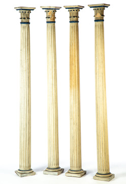 Four decorative columns, probably American, early 20th century. Fluted Corinthian style columns with original paint and gesso capitals. 72"h.