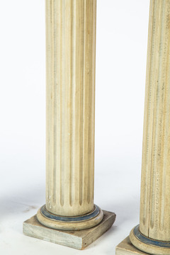 Column (4); Corinthian Type, Wood, Gesso Capitals, Fluted, White Paint, 72 inch.