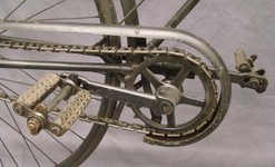 The chain guard and cranks on the Pope Columbia Camel Back Light Roadster bicycle; image credit on full record. |