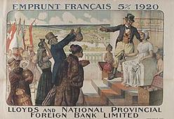 A poster by Jonas, Emprunt Francais 5% 1920 (1920 5% French War Loan) [Lloyds and National Provincial Foreign Bank Limited]. Horizontal format chromol... [more detail available via subscription]