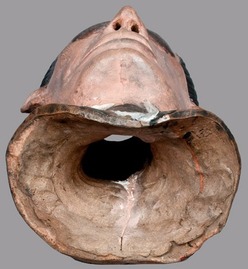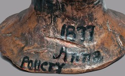 | | Salt-glazed stoneware Abraham Lincoln death mask, signed in paint on reverse "Anna Pottery / 1877," Wallace and Cornwall Kirkpatrick, bottom view; image credit on full record. |