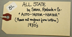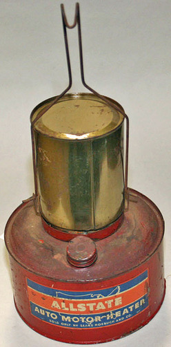 An Allstate 'Auto-Motor-Heater' by Sears, Roebuck & Company. The unit thaws out a car engine from underneath. Circa 1930s.