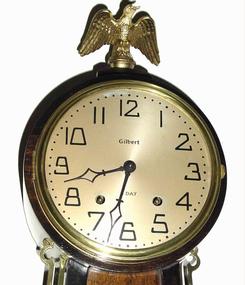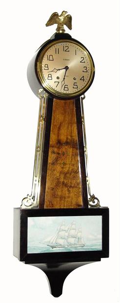 A circa 1929, Wm. L. Gilbert, 8-Day Banjo, time and strike {pendulum movement}. The best part is the melodious 'bim-bam' strike on two steel rods.