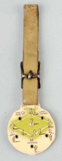 A celluloid baseball scorekeeper, rare, depicts a baseball diamond on one side and Babe Ruth wearing a Boston Red Sox hat on the other. p4... [more detail available via subscription]