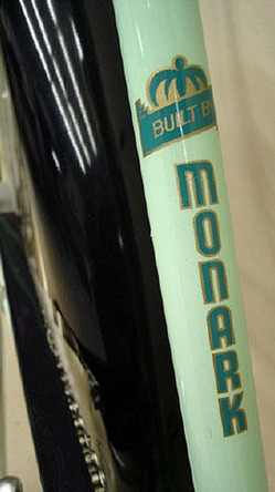 | The maker's decal on the Monark Firestone Super Cruiser bicycle; image credit on full record. |