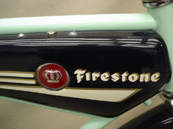 | Tank detail on the Monark Firestone Super Cruiser bicycle; image credit on full record. |