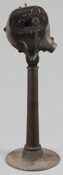 | A blacksmith's forge blower marked Lancaster Geared Blower Champion Blower & Forge Co. on the on gear box; image credit on full record. |