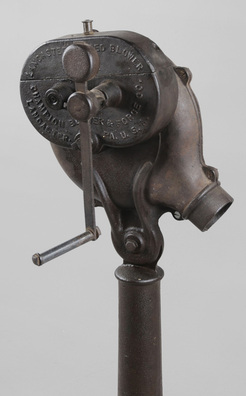 | The Lancaster Geared Blower and Champion Blower & Forge Co. mark on the blacksmith's shop forge blower; image credit on full record. |