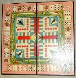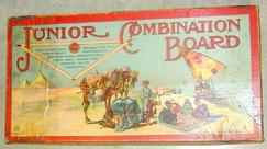 Milton Bradley's Junior Combination Game with doublesided board and various pieces allowing for twelve games. Sold in lot with two paper items.