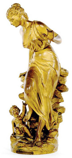 Henri Huppe (French, working 1874-79), PREMIER APPEL, a bronze sculpture with gold patina, signed: on base.