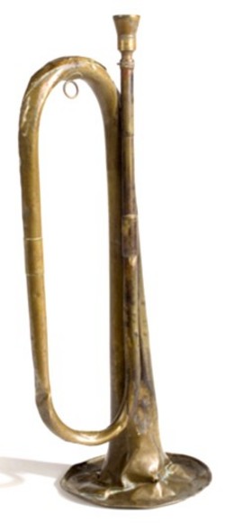 An Indian Wars era field bugle stamped Selmer; image credit on full record.