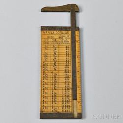 Wood and Brass Cordage Caliper Measure, Whitlock Cordage Co., Jersey City, New Jersey, with sliding brass arm and incised table, maker's name and adve... [more detail available via subscription]