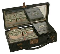 | | An Ansco detective camera in a vanity case; basically a small box camera housed in a vanity case with an art-deco style lipstick, powder, rouge, comb and change purse; image credit on full record. |