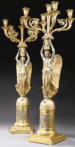 A pair of German Neoclassical gilt and silver-gilt five-light candelabra, late 19th century, by Neresheimer, Hanau. Marked on the base for Neresheimer... [more detail available via subscription]