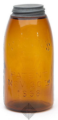 Canning Jar; Mason's, Keystone in Circle, Patent Nov 30th 1858, Yellow Amber, Half Gallon.