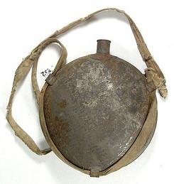 A Civil War Union canteen, pewter spout, three tin sling loops, cotton web sling.