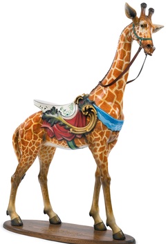 A William Dentzel carved carousel giraffe with glass eyes and original leather reins; image credit on full record.