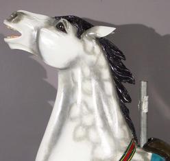 | A detailed view of the head of this Herschell Spillman carousel horse; image credit on full record. |