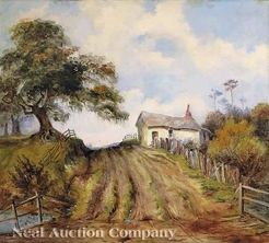 An oil on canvas painting by George Frederick Castleden (American/New Orleans, 1861 to 1945). Landscape, A Highway of the Past, signed G... [more detail available via subscription]
