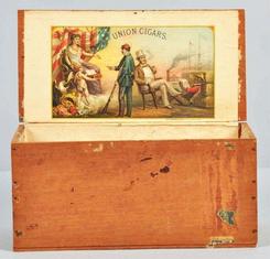 Union Cigars cigar box, one of the greatest Civil War and Black History related cigar boxes known. Only a handful have been seen. Beautiful label with... [more detail available via subscription]