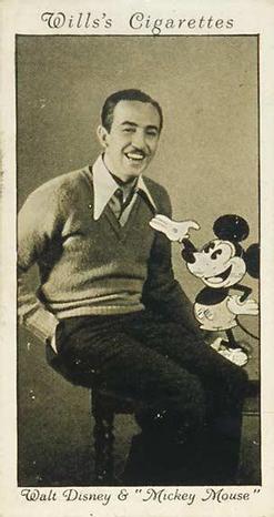A cigarette card featuring Walt Disney and Mickey Mouse, circa 1931, shown on a Wills's Cigarettes card, issued by the Imperial Tobacco Co. (of Great ... [more detail available via subscription]