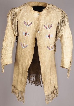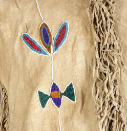 A Crow man's beaded and fringed hide coat, circa 1890, decorated on both sides with highly stylized floral elements, stitched in numerous shades of op... [more detail available via subscription]