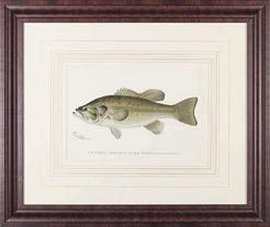 A set of six color lithographs depicting game fish, by Denton, 1896, New York. Framed and matted alike.