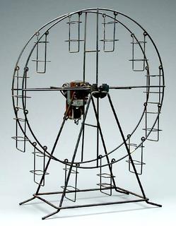 A motorized wire frame Ferris Wheel display or toy.