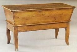 A French Provincial walnut dough box, late 18th or early 19th century. Rectangular lift top with breadboard ends, flared dovetailed side panels restin... [more detail available via subscription]