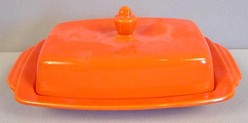 A Homer Laughlin, Fiesta, Riviera Century 1/2 pound butter dish and cover, red.