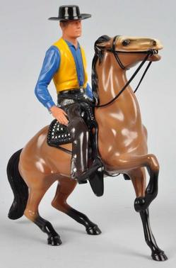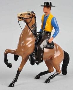 | A Hartland Gil Favor Western theme figure on rearing horse with pistol and hat; image credit on full record. |
