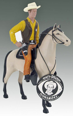 A Hartland Plastics western theme horse and rider, Matt Dillon on walking horse with original string tag. p4A.com note: James Arness s... [more detail available via subscription]