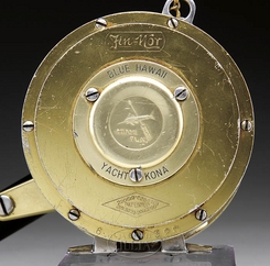 A Fin-Nor brass [deep sea] fishing reel used on Lee Marvin's yacht "Blue Hawaii". Serial number 6 320, inscribed "BLUE HAWAII YACHT, KONA". <... [more detail available via subscription]