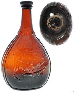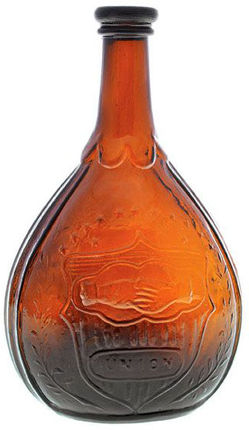 Flask; Calabash, GXII-043, Clasped Hands & Eagle, Amber, Quart.