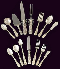 | | Kirk sterling silver flatware service in Repousse pattern; image credit on full record. |