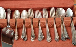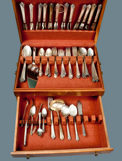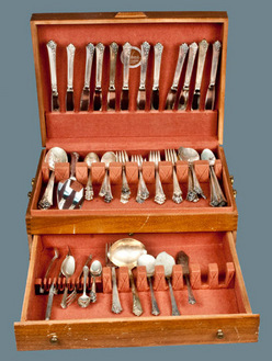 | | A 93 piece set of sterling silver flatware in Damask Rose pattern by Oneida, 20th century; image credit on full record. |