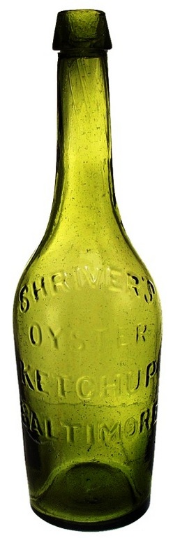 A 'SHRIVER'S OYSTER KETCHUP BALTIMORE' bottle with applied top & smooth base. The rare large size Shriver's in a nice light to medium green. This exam... [more detail available via subscription]