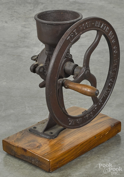 A cast iron [hand crank food grinder] The Root-Heath Mfg. Co. grinder.