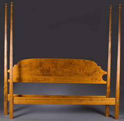 Furniture: A pencil-post tester bed, J.L. Treharn, Youngstown, Ohio, late 20th century, curly maple (tiger maple). Handmade king-size bed complete wit... [more detail available via subscription]