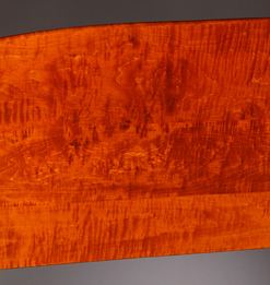 Furniture: Bed-Tester; Treharn (JL), Tiger Maple, Shaped Headboard, Pencil Posts, Square Legs.