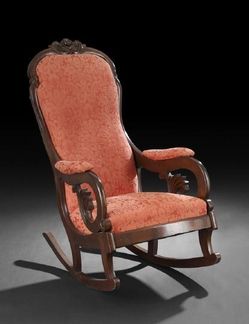 Furniture: A [Victorian] transitional American Late Classical into Rococo Revival mahogany "Lincoln" rocking chair, third quarter 19th century, with ... [more detail available via subscription]