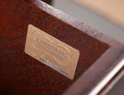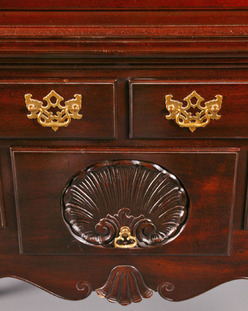Furniture: A Kittinger Chippendale style highboy [or high chest], labeled "Old Dominion". Solid mahogany with dark clear finish. Two parts. Upper case... [more detail available via subscription]