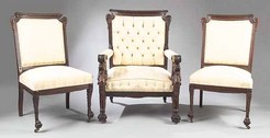 | The three upholstered chairs belonging to this 4-piece Renaissance Revival suite attributed to the New York cabinet makers Herter Brothers; image credit on full record. |