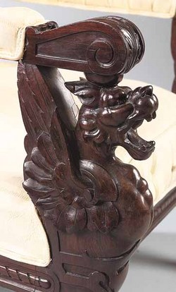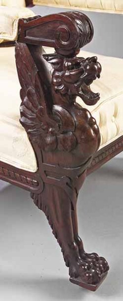 | One of the carved griffin arms from this suite of rosewood furniture; image credit on full record. |