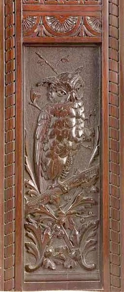 | The carved center panel from the back of the sofa in this parlor suite; image credit on full record. |