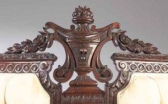 | The carved crest on the double-back sofa in this parlor suite.; image credit on full record. |