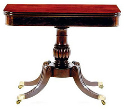 Furniture: Table-Card; Classical, Vose (Isaac), Mahogany, Turned & Fluted Pedestal, Circular Base, Saber Legs.