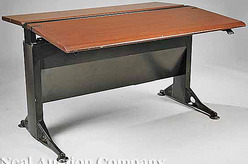 | | A Herman Miller mahogany and steel drafting table, mid-20th century, top with adjustable leaf, steel supports on trestle legs, adjustabletop; image credit on full record. |