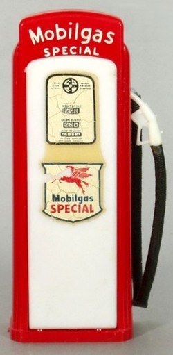 "Mobil Gas" pump bank [plastic gas pump coin still bank advertising Mobilgas Special automotive gas].