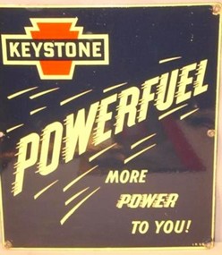 Keystone Powerfuel 'More Power To You!' porcelain pump plate sign, dated 1955.